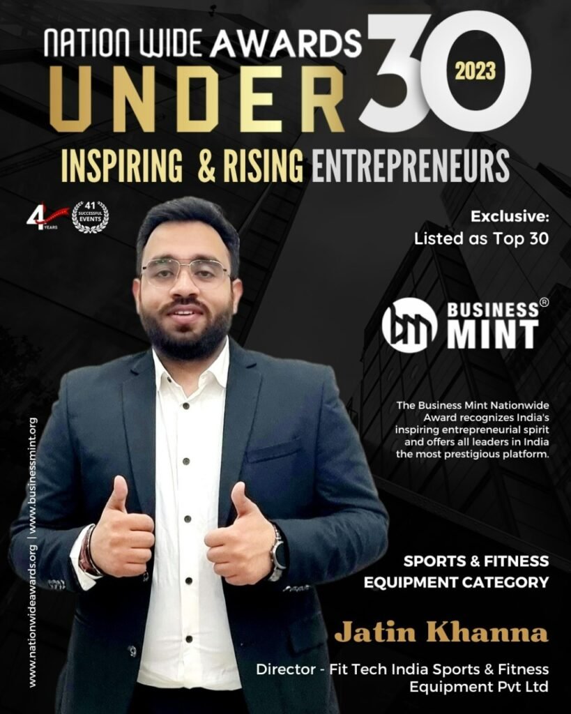 We feel immense pleasure in announcing that our incredible journey has soared to unprecedented heights. Our Director, Jatin Khanna, has been honored with multiple prestigious awards recognizing his outstanding entrepreneurship in India under 30. These remarkable accolades serve as a testament to our unwavering dedication to excellence and a constant source of inspiration. They also boost our dedication to keep innovating and redefining boundaries within the fitness industry.
